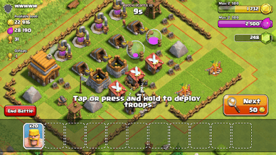 Diawal permainan kamu akan diberikan tutorial oleh seorang gadis ikuti saja semua petunjuknya , tapi ada satu hal yang harus diperhatikan jangan sekali-kali menggunakan gems di level ini. Kumpulkan saja sampai mencapai 500 coc gems.